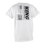 Le contraste du blanc et du noir attire le regard, avec un petit logo King Pro Boxing à l’avant et un grand visuel QR code stylisé dans le dos.